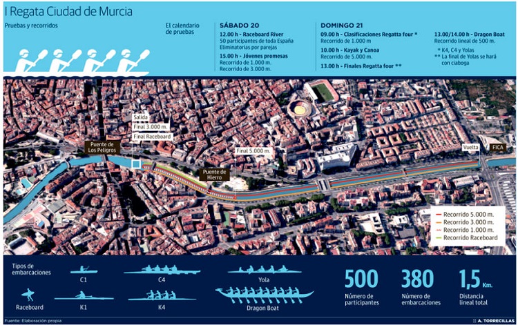 La capital de la Región recupera así el esplendor de las aguas del Segura 35 años después de la última regata deportiva que acogió la ciudad en la primavera del 1981, con salida desde el antiguo Club Remo (pasada la Pasarela Manterola). El evento contará con la presencia del olímpico español más laureado de la historia, el piragüista David Cal, numerosos deportistas de élite de toda España y el murciano Francisco Luengo, número 11 del mundo en la categoría Senior.