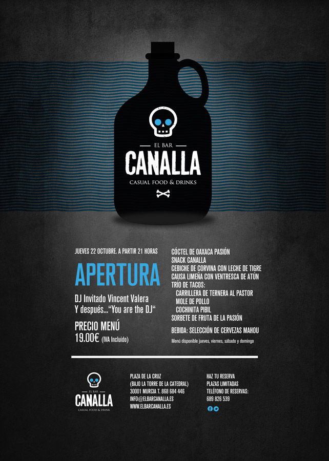 Este Jueves 22 de Octubre a partir de las 21:00. Podremos acudir a la apertura de un nuevo restaurante en Murcia. El Bar Canalla Casual Food & Drinks.