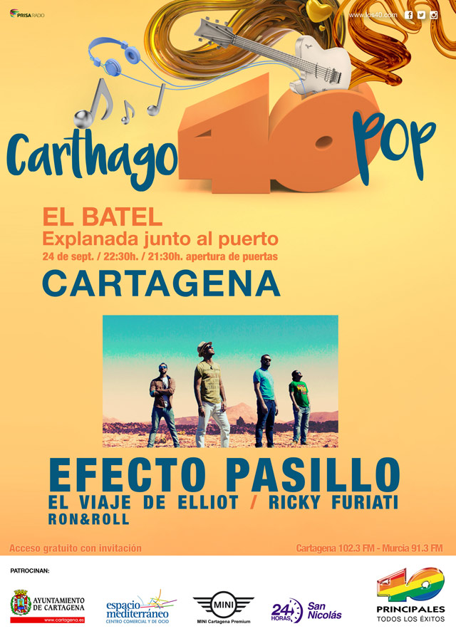 Carthago 40 Pop se celebra con la colaboración del Ayuntamiento de Cartagena y la entrada es gratuita con invitación.