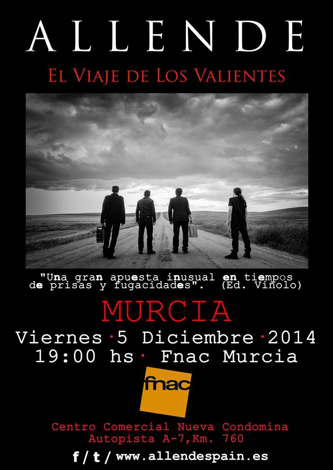 ¡El viaje continúa! Este Viernes 5 de Diciembre a las 19:00 horas, ALLENDE presenta su álbum debut 'El Viaje de Los Valientes' en Murcia con un concierto en Fnac Murcia, dentro de Centro comercial CC Nueva Condomina.