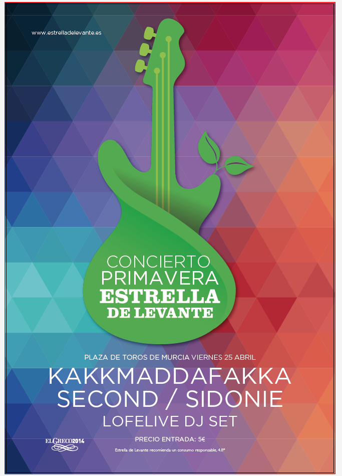 Un año más, Estrella Levante nos trae el concierto de las Fiestas de Primavera de Murcia. La Plaza de Toros será el escenario dónde este Viernes 25 de abril, los asistentes podrán disfrutar de las actuaciones de Kakkmaddfakka, Sidonie y los murcianos Second.