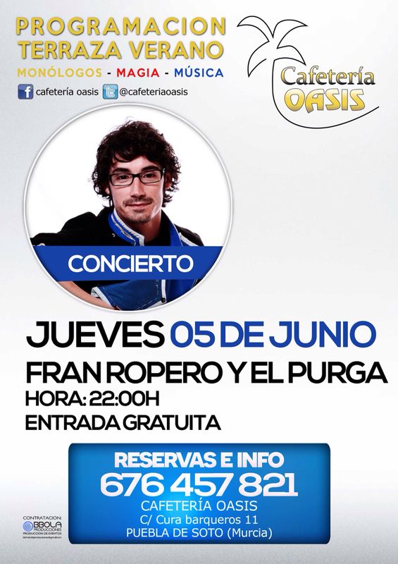 La cafetería Oasis situada en Puebla de Soto está de celebración, y es que cumplen 30 años y con motivo de la renovación de su terraza han organizado cada jueves por la noche el evento #quesuertedejueves en el cual durante todo el verano habrá un artista, ya sea monologuista, cantante, mago...
