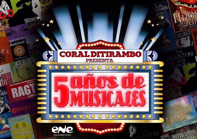 La Coral Ditirambo nos presenta el espectáculo titulado "5 años de musicales"coincidiendo con la celebración de su quinto aniversario que celebrarán el próximo sábado 12 de junio en el Auditorio Víctor Villegas de Murcia, a partir de las 20:00 horas. En "Musicals Remembers!" no faltarán escenas de musicales míticos como Los Miserables, Sweeney Todd, Rent o El Rey León. El precio de la entrada es de 7 €.