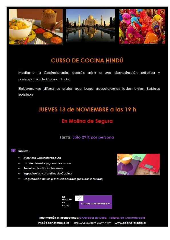 Repetimos nuestro divertido curso de Cocina Hindú, esta vez en Molina de Segura, de 19 a 22 h.