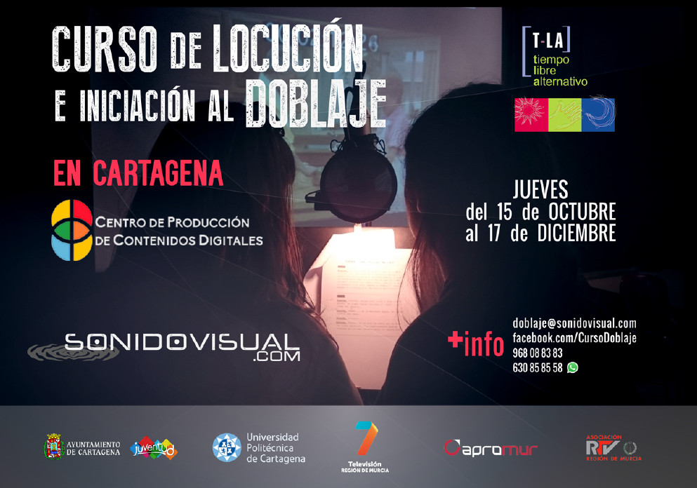 Sonidovisual organiza en Cartagena una nueva edición del curso de locución e iniciación al doblaje; una formación de calidad, con gran atractivo y buenos resultados en cuanto a la satisfacción expresada por los alumnos que lo han cursado.