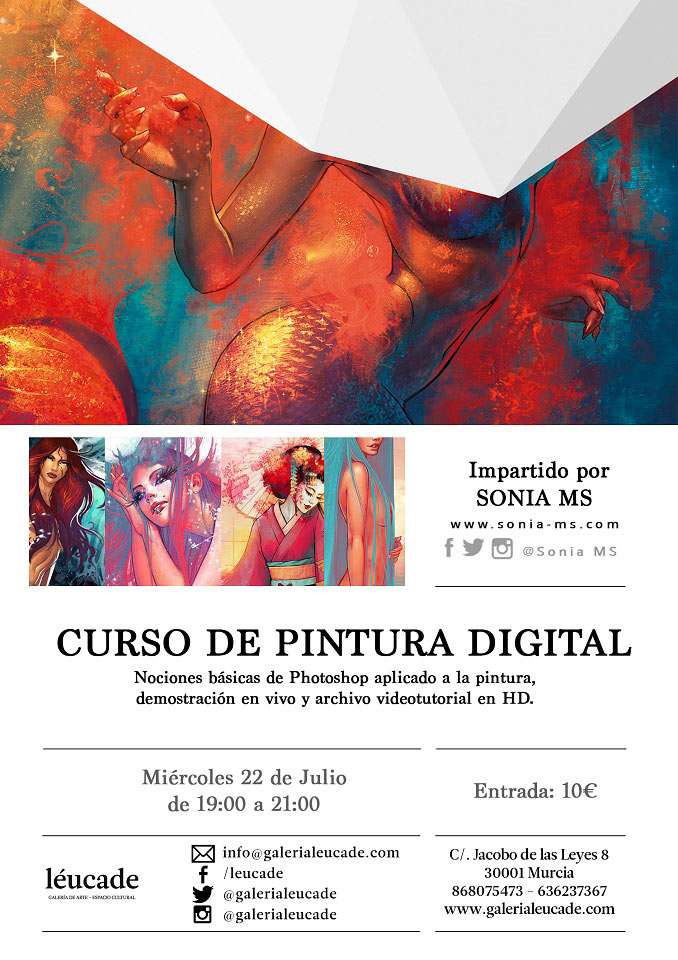 El miércoles 22 de julio de 19:00 a 21:00 Sonia MS impartirá un curso de pintura digital en la Galería Léucade.