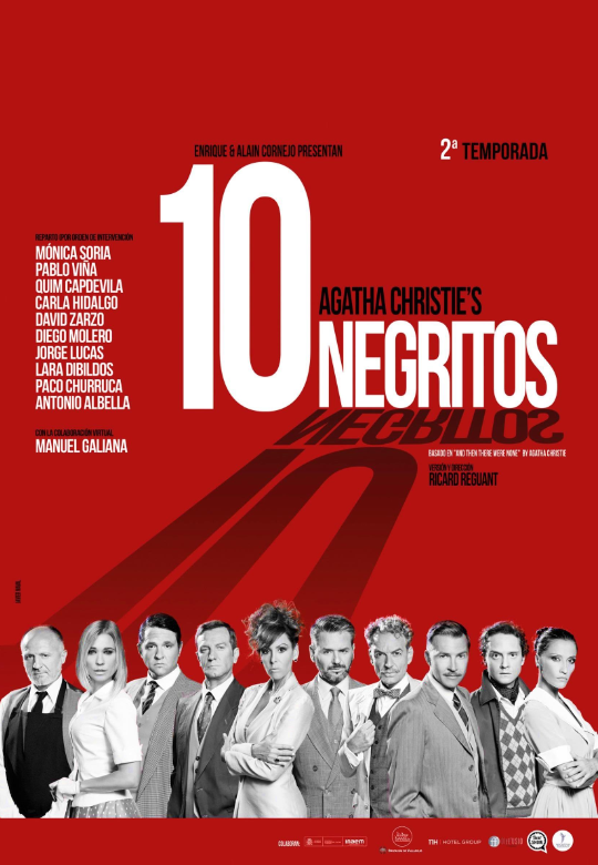 10 negritos es una de las obras más inquietantes y famosas de la maestra del suspense Agatha Christie, mezcla de misterio, crimen y suspense. La versión que regresa ahora a nuestros escenarios es la escrita y dirigida por Ricard Reguant, un viejo conocido en este tipo de adaptaciones.