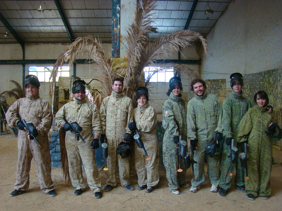 Al entrar te dan como siempre un mono completo de camuflaje, un peto protector, guantes, la máscara y la marcadora (que no pistola), y una charla introductoria sobre seguridad, para que salgáis de una pieza.