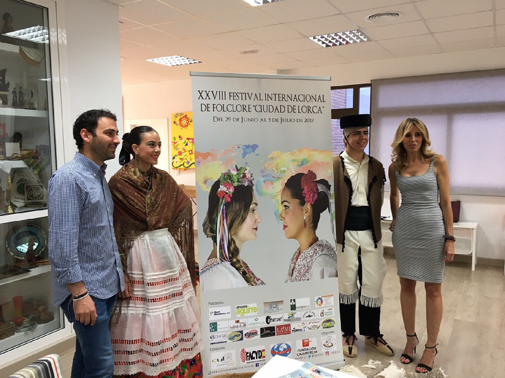 El Concejal de Cultura en el Ayuntamiento de Lorca, Agustín Llamas, y la presidenta del grupo de Coros y Danzas de Lorca, Inmaculada Martínez de Miguel, han presentado esta mañana la programación del XXVIII Festival Internacional de Folklore “Ciudad de Lorca”, que se celebrará del 28 de junio al 5 de julio, ofreciendo además la actuación de 5 grupos.