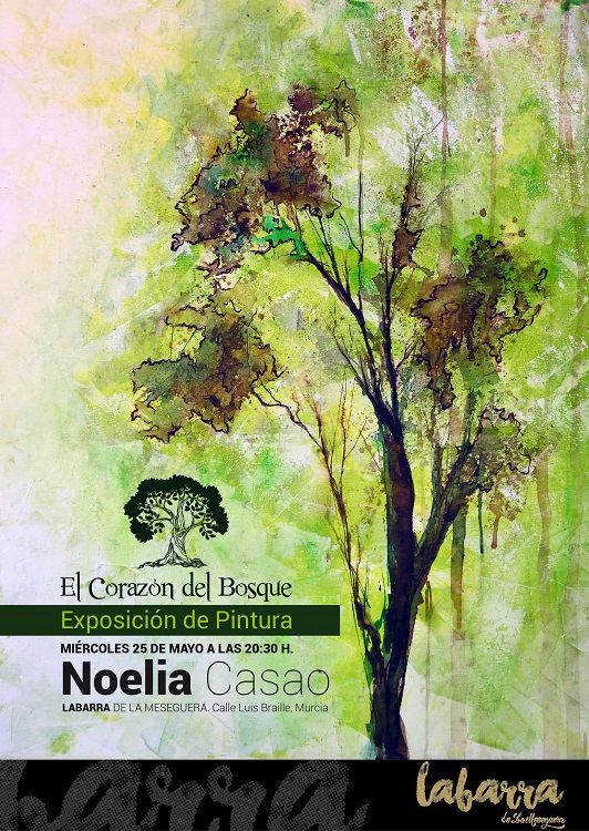 La artista Noelia Casao presenta su nueva exposición de pintura en La Barra de la Meseguera (Calle Luis Braile, Murcia). La exposición, titulada "El Corazón del Bosque", se inauguró el pasado miércoles 25 de mayo y podrá visitarse hasta e 30 de junio.