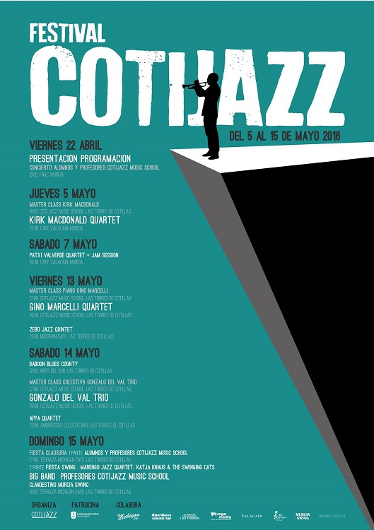 El Festival CotiJazz 2016 se realizará en Las Torres de Cotillas del 5 al 15 de mayo, y contará con artista de nivel local, nacional e internacional.