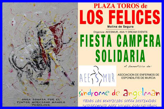 La intención de la Fiesta Campera es pasarlo bien, divertir a la gente y colaborar con una causa benéfica. Estos son los tres objetivos principales de la primera Fiesta Campera Benéfica, que se está organizando y que tendrá lugar el próximo día 19 de Abril en la Finca Los Felices de Molina de Segura (Murcia), a beneficio de La Asociación AESSMUR Y la Asociación ASA.