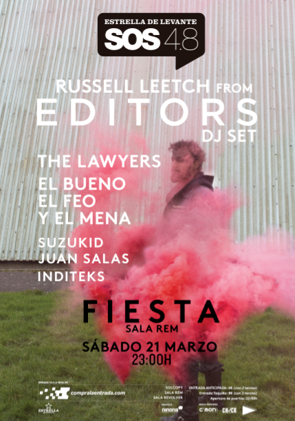 El Festival Murciano SOS 4.8 se acerca y la Sala Rem quiere dar el pistoletazo de salida con un evento que sin duda será la referencia del mes de marzo. Editors Dj set, artifice de remezclas para bandas como The Hives, aterriza en la Sala Rem para ofrecernos su buen hacer a los platos y entregarnos una calentita y afilada sesión de indie-pop.