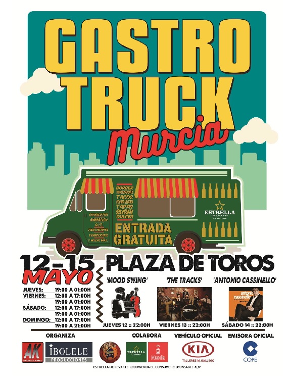 A partir de mañana, jueves 12, y hasta el próximo domingo 15 de mayo, se celebra en la Plaza de Toros de Murcia el novedoso evento GastroTruck Murcia. 12 vehículos clásicos restaurados y gestionados por otros tantos restaurantes regionales y nacionales se unen para crear un evento culinario que hará las delicias de todos los asistentes.
