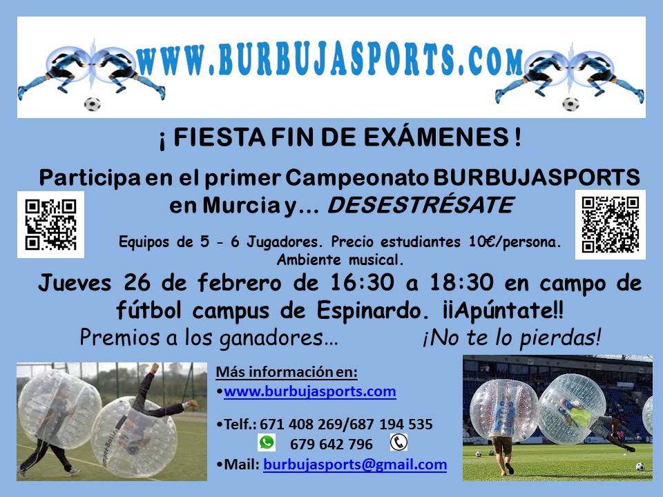 Para celebrar el fin exámenes, la gente de Burbuja Sports, celebra el I Campeonato de Murcia Burbuja Sports, donde podrás descubrir y practicar el Fútbol burbuja.