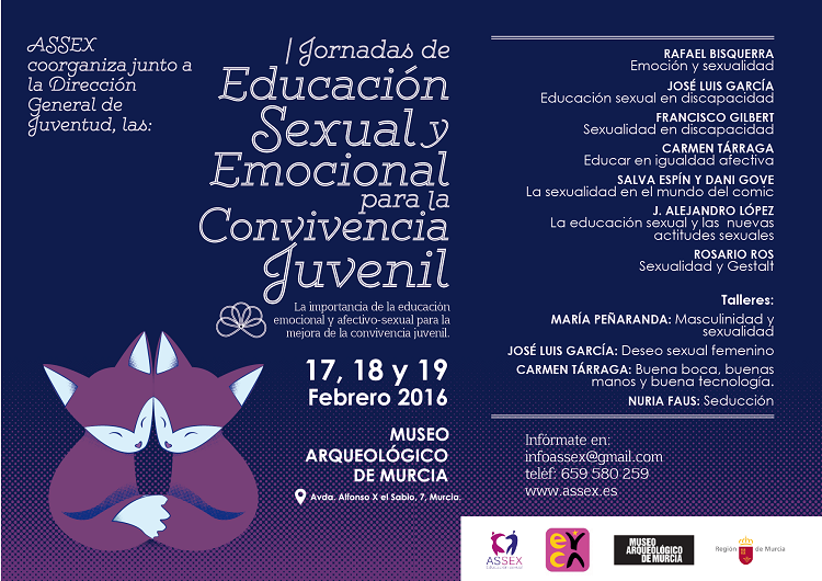 La Asociación de sexualidad educativa ASSEX y la Dirección general de juventud de la CARM presentan las I Jornadas de Educación Sexual y Emocional para la Convivencia, la importancia de la educación emocional y afectivo-sexual para la mejora de la convivencia juvenil.
