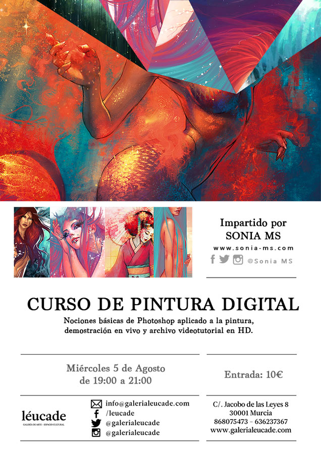 El miércoles 5 de Agosto de 19:00 a 21:00 Sonia MS impartirá un curso de pintura digital en la Galería Léucade.