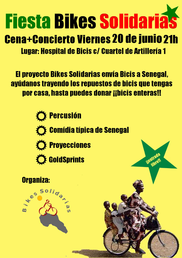 Este viernes 20 de junio, en el Hospital de Bicis, tendrá lugar la segunda fiesta de Bikes Solidarias, una pequeña asociación sin ánimo de lucro fundada a principios de 2010 con la intención de desarrollar micro proyectos de cooperación al desarroillo internacional.