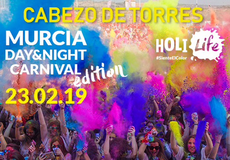 El sábado 23 de febrero de 2019 tiene lugar la quinta edición de la carrera de colores en Holi Life Murcia Cabezo de Torres.