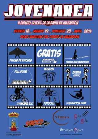 Del viernes 18 al domingo 20 de abril tendrá lugar en la plaza de las Comunidades Autónomas del Paseo Marítimo de Puerto de Mazarrón una serie de actividades totalmente gratuitas. Esta segunda edición cuenta con actividades más modernas que pueden ser disfrutadas tanto por pequeños como por mayores.