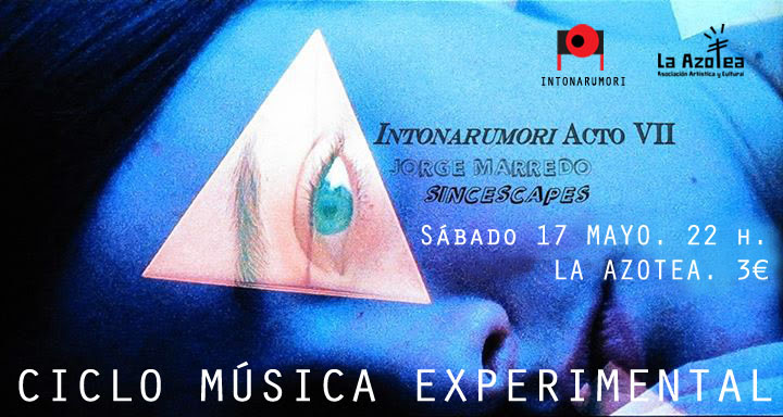 La Asociación murciana de arte sonoro y música experimental Intonarumori, nos trae a La Azotea a Jorge Marredo, músico se va consolidando como uno de los nombres más destacados de la nueva generación de la música experimental alternativa en España. De formación autodidacta, su obra abarca estilos que van de las grabaciones de campo, hasta el paisaje sonoro, pasando por la electrónica con sintetizadores, el radioarte, el noise o la psicodelia. Ha publicado en distintos sellos internaciones de música experimental y en algunos de los principales españoles (como exp_net o Audiotalaia). Ha tocado en certámenes como Los Ciclos de Música Imprevista y Sound In en Madrid, El festival Off_ Hz de Valencia o el de Moradas en Almería. Asimismo ha colaborado con grupos de improvisación como LOM (en Valencia) o Arín Dodó (en Madrid). Actualmente compagina su carrera en solitario con proyectos como "M&M" (junto a Remi Carreres) y "Electric Jojoto" (junto a Juan Crek).