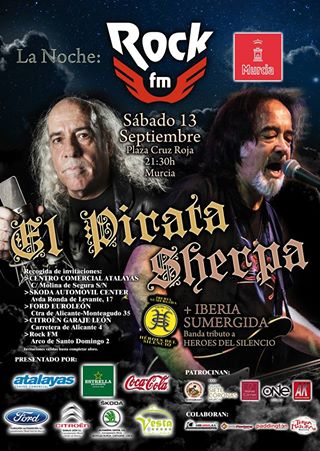 Mañana, sábado 13 de septiembre, a partir de las 21:30, será la Noche de Rock FM en la Plaza de la Cruz Roja, donde El pirata será el encargado de abrir una noche en la que actuarán también Sherpa e Iberia Sumergida, la mejor banda tributo a Héroes del Silencio, que culminará la velada con un recorrido por las mejores canciones del grupo zaragozano.