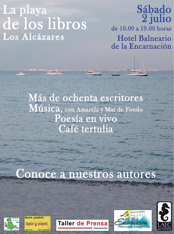La Playa de los Libros, el primer gran evento literario del verano, tendrá lugar el próximo sábado 2 de julio en el Hotel Balneario de la Encarnación de Los Alcázares, un lugar encantador, a pie de playa.