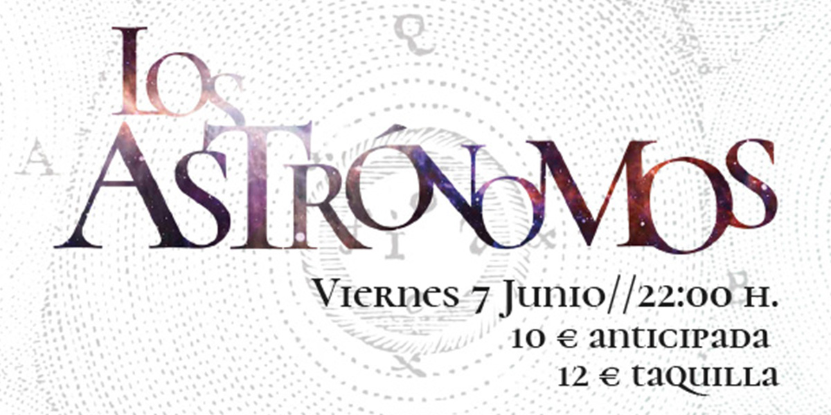 Los Astrónomos en Cartagena_ Los Astrónomos en concierto el 7 de junio en la sala Athenas Club de Cartagena ENTRADAS Entrada anticipada: 10€ (+ gastos) Entrada en taquilla: 12€ HORARIO A las 22.00 horas. Prohibida la entrada a menores de 18 años.