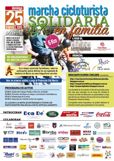 Inscripción: http://marchacicloturistasolidariaenfamilia.blogspot.com.es/