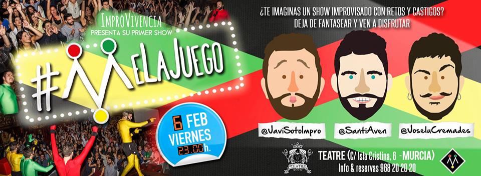 ImproVivencia presenta: #MeLaJuego, un show único e irrepetible que hará disfrutar al público de un ejercicio de creatividad espontánea. Se trata de un concurso donde tres improvisadores se retan encima de un escenario a través de diferentes pruebas. No competirán por ganar, sino por no perder y recibir el castigo final. Y aún hay más, porque el único juez de este espectáculo improvisado es... el público.