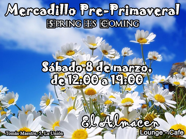 El próximo sábado 8 de marzo se realizará en El Almacén Café Lounge (Calle Tomás Maestre, 5) de La Unión el Mercadillo Artesanal Pre-Primaveral.