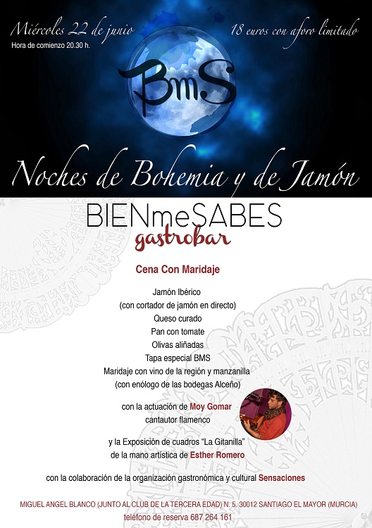 El próximo miércoles 22 de junio, a partir de las 20:30 horas, se realizará en el Gastrobar BIENmeSABES (Calle Miguel Ángel Blanco, 5, Santiago el Mayor, Murcia) una noche en la que la gastronomía y el arte se fusionarán magistralmente.