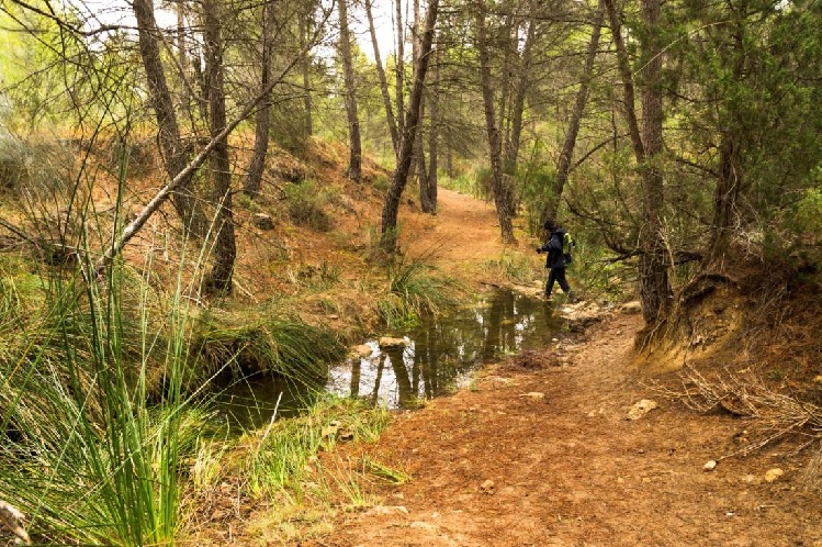 "Visitamos por primera vez esta pequeña pedanía para recorrer sus cuidadas huertas en plena floración del almendro, cuando la imagen de la zona está representada por la flor del almendro, cultivo mayoritario en este bonito rincón. Conectaremos con la Vereda de Socovos, todavía transitada por el ganado ovino, cruzaremos el Arroyo de los Frailes para aproximarnos al Castillo de Pliego que se alza sobre un minúsculo cerro rodeado de campos de cultivo; aunque no es mucho lo que queda de esta construcción, todavía merece la pena visitarlo, ya que permite hacerse una idea del poblamiento de la zona en época de dominación musulmana; a sus pies, encontraremos un viejo acebuche de porte muy peculiar. El camino tiene un gran interés geológico como muestra la gran variedad de suelos, y la gran diversidad de fósiles marinos que forman las rocas con las que se han construido gran cantidad de los muretes que caracterizan los abancalamientos de toda esta zona. La ruta discurre también junto a algún corral de ganado y plantaciones de olivo que por estas fechas, probablemente tendrán todavía a los agricultores atareados con la recogida de la oliva. Entre la vegetación que encontraremos a nuestro paso, destacan algunas encinas y grandes retamas que en ocasiones envuelven al caminante como si fuera un auténtico bosque."