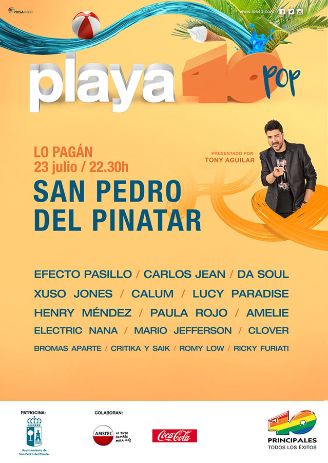 Xuso Jones será la estrella del Playa 40 Pop 2015, que vuelve un año más a San Pedro del Pinatar con Tony Aguilar. La mayor concentración de artistas a orillas del Mar Menor, que se celebrará en Lo Pagán el jueves 23 de julio a las 22:30 h.