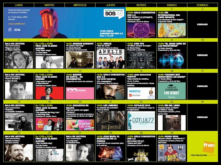 Ya tenemos las actividades para el mes de abril del Forum Fnac Nueva Condomina, llena de música, cine, literatura y talleres.