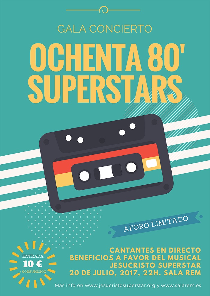 Ochenta 80' Superstars, gala concierto el 20 de Julio en la Sala REM de Murcia. Evento benéfico a favor de la Asociación Cultural Jesucristo Superstar de Murcia.