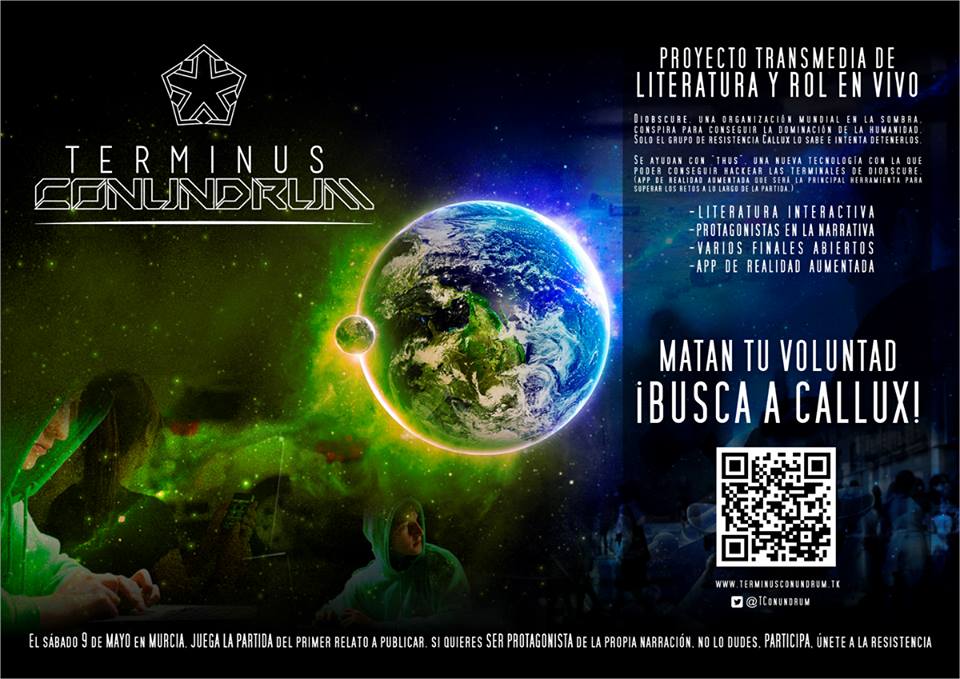 “El destino de nuestra libertad y bienestar como seres humanos está en peligro, y aun peor, un peligro oculto, invisible ante tus ojos. Busca a Callux, somos la resistencia, ¡unete!” La partida de rol en vivo tendrá lugar el día sábado 9 de Mayo en la ciudad de Murcia, siendo su inscripción y participación TOTALMENTE GRATUITA, pero teniendo un máximo de participantes (20).