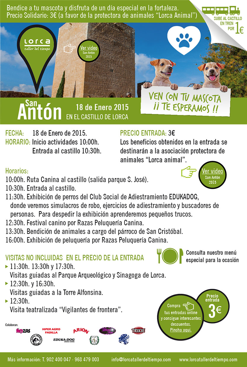 El domingo 18 de enero, a partir de las 10:00 horas, comienzan las actividades con motivo del día de San Antón en el Castillo de Lorca.