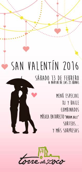 Un año más, en Torre de Zoco hemos preparado un menú realmente especial para celebrar el día de San Valentín, dicha celebración tendrá lugar el sábado 13 de febrero, a partir de las 21 horas.
