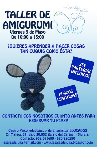 Taller de amigurumi, técnica de origen japones que consiste en tejer muñecos en tres dimensiones. Se impartirán las nociones básicas para poder empezar a tejerlos. Impartidos por "Las alas de Julia"
