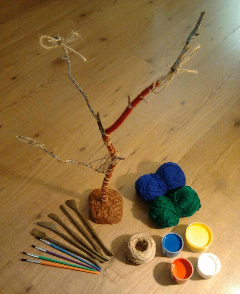 En este artístico taller cada niño/a creará un arbolito super original, realizado a partir de unas ramas secas y sobre una base de arcilla. Posteriormente lo pintarán con témperas de colores y lo decorarán con lana.