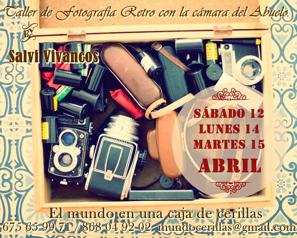 Salvi nos cuenta en qué consiste el taller: "En este taller se pretende recuperar tanto los tipos de cámaras como los modos de realizar fotografías que practicaron nuestros padres y abuelos. Descubriremos como se utilizan estas obsoletas cámaras, revelaremos los carretes y ampliaremos manualmente nuestras propias fotografías en el laboratorio físico/químico, nada de ordenadores. Además todo ello en un marco ideal como es la ciudad de Cartagena que nos servirá de escenario y módelo para hacer nuestras fotografías."