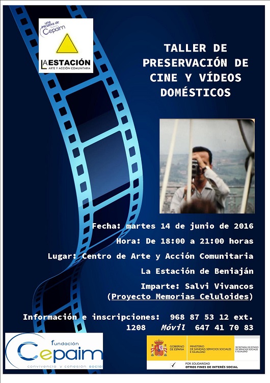 El próximo martes 14 de junio, se realizará en el Centro de Arte y Acción Comunitaria La Estación de Beniaján un Taller de Preservación de cine y vídeos domésticos impartido por Salvi Vivancos de Proyecto Memorias Celuloides.