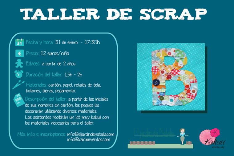 El próximo día 31 de Enero, Kakuii Eventos DIY, en colaboración con la escuela infantil bilingüe El Jardín de Natalia, de Puente Tocinos, celebra un taller de Scrap para niños.