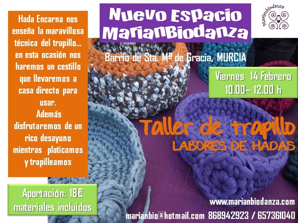 Labores de Hada nos trae un Taller de trapillo que voy para el 14 de febrero, de 10 a 12 horas en Espacio Marianbiodanza (Barrio de Santa María de Gracia, en Murcia).
