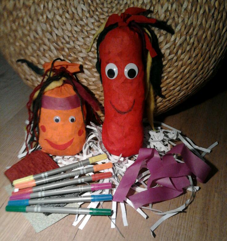 En este original Y divertido taller cada niño/a realizará 2 muñequitos muy simpáticos realizados con medias, papel triturado para su relleno, y decorado con vinilo, goma-eva, papel de seda, lana de colores y ojos móviles.