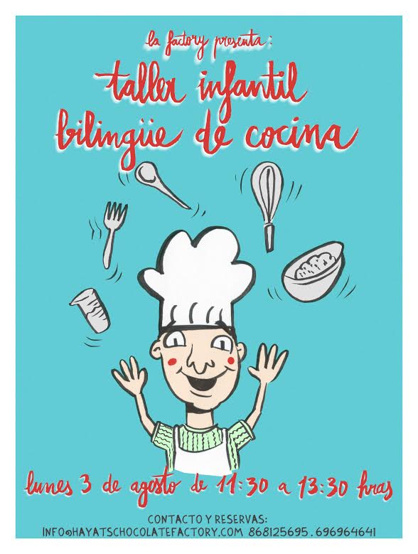 Por petición popular Hayat´s Chocolate Factory ofrece un taller de cocina bilingüe para niños en verano, Será el día 3 de Agosto.
