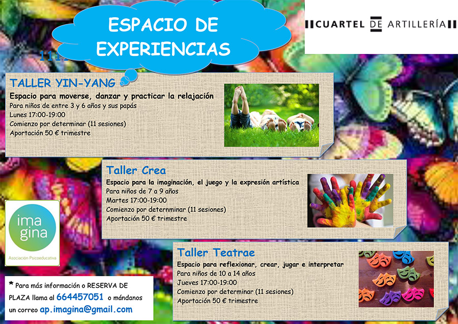 Reserva de plaza e Inscripción: enviando un email a ap.imagina@gmail.com o llamando al 664457051. PLAZAS LIMITADAS y reserva por riguroso orden de inscripción.