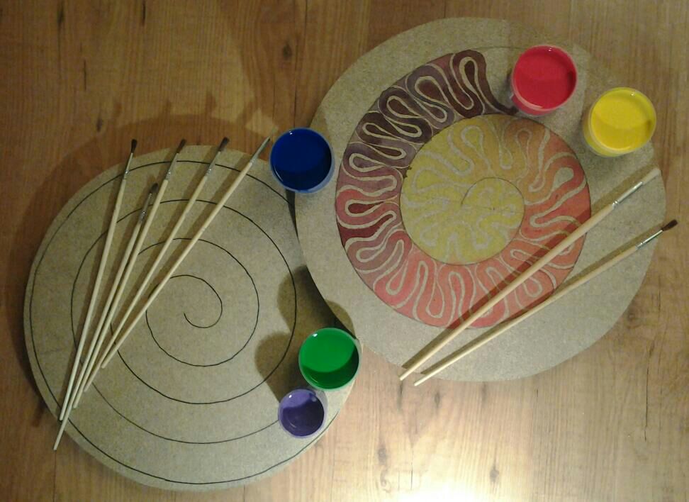 En este taller, cada niño/a pintará con témperas una espiral sobre soporte de madera a la vez que investigará sobre los colores cálidos y fríos, así como sus mezclas y diferentes posibilidades.