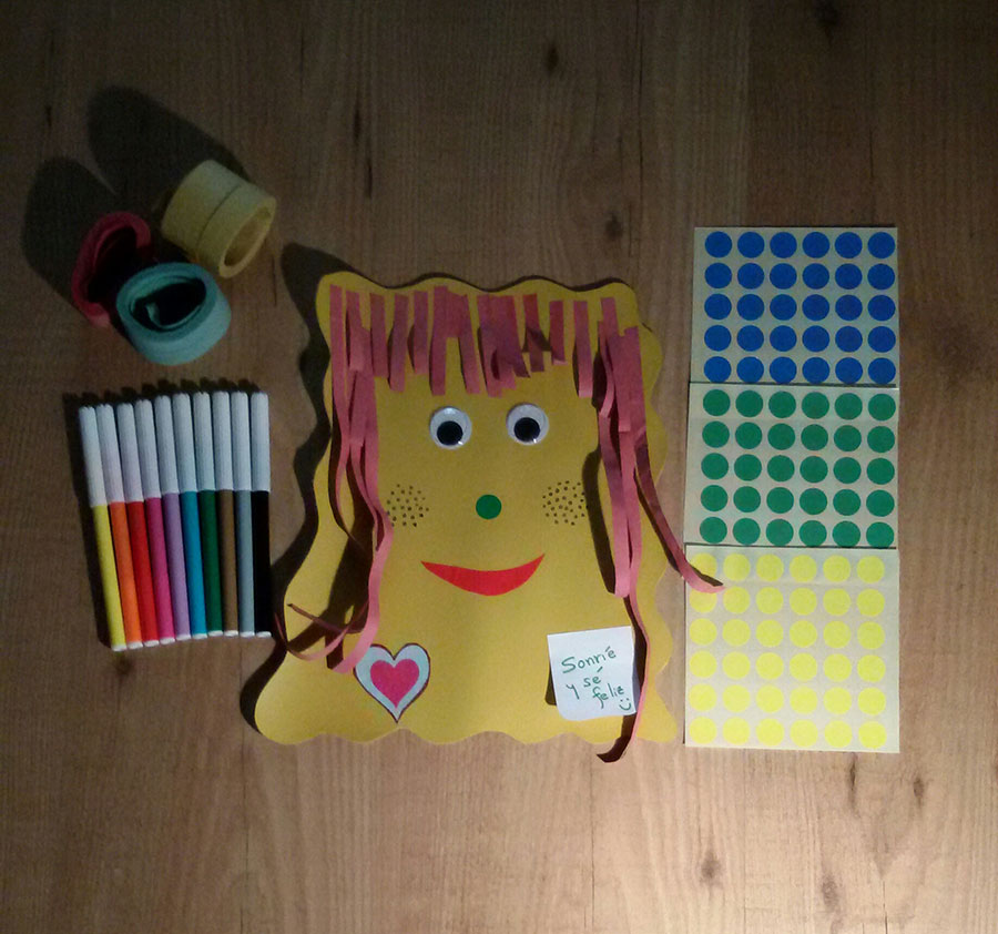 En este creativo taller cada niño/a realizará 2 muñequitos para la pared con mensajito feliz, usando para ello varios materiales: telas, pegatinas, vinilo, serpentina, ojos móviñles., etc.